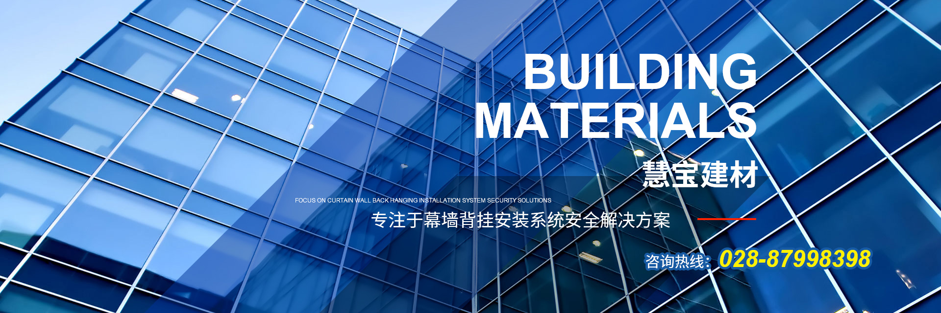 成都慧寶建材有限公司,成立于2008年,是一家集建筑幕墻研發、加工銷售、干掛安裝為一體的企業。公司秉承“一起創造,共同分享”的 企業理念,專注于幕墻背掛安裝系統安全解決方案。 公司擁有專業的工程技術、銷售及售后服務團隊,為客戶提供技術培訓和技術咨詢。公司以市場為導向,質量標準為原則,客戶滿意為宗旨,本著“誠信和諧、合作共贏”的經營理念,繼續貫徹“創新進取、追求卓越”的經營方針,為客戶提供更加優良的服務! 查看更多